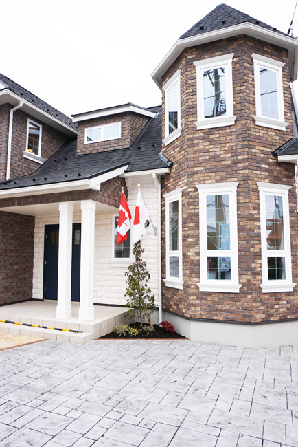 レンガ張りとホワイトストーンでデザインされた外観スタイルに八角形のタワーが
