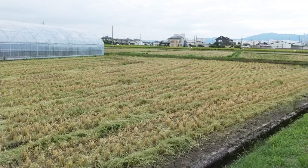 朝、ちゃんとあったはずの稲が夕方にはもう刈ってありました🌾