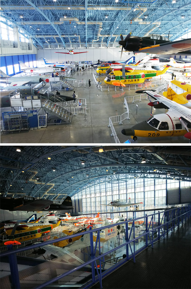 航空自衛隊の基地に併設してある施設で格納庫を利用しての戦闘機の展示は圧巻でした。現役を引退したF-1支援戦闘機やブルーインパルス、ヘリコプターなどが展示されています。