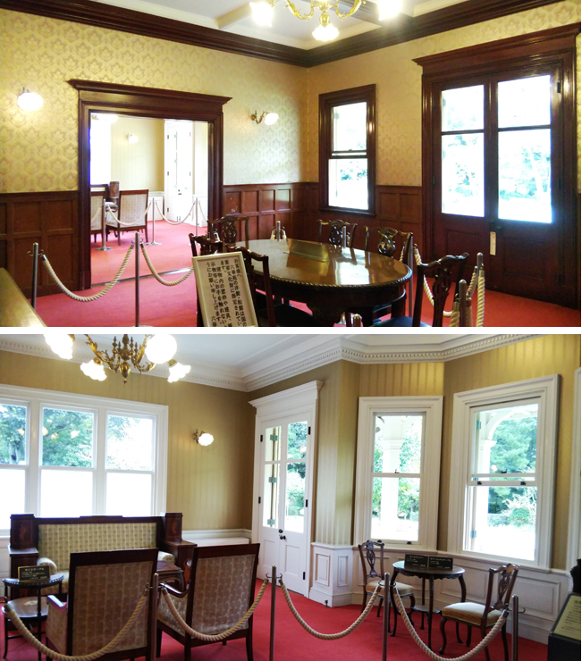 六華苑は別名、旧諸戸清六手邸で、山林と呼ばれた桑名の実業家の二代目の邸宅として大正2年に 竣工されたようです。洋館と和館が一体になった大きなお屋敷なのですが、特に洋館部分は、 鹿鳴館などを設計した「ジョサイア・コンドル」が手がけていて、地方では唯一残る作品のようです。