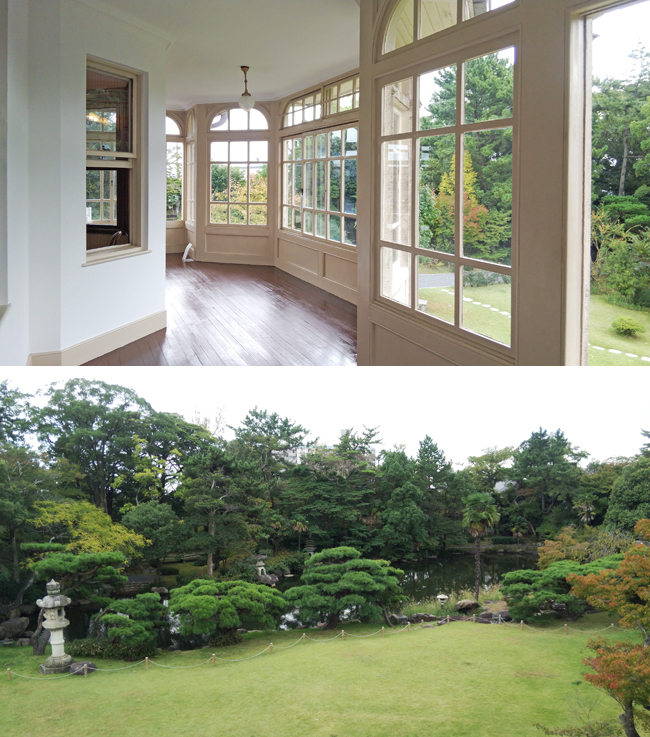 池泉回遊式の日本庭園となっており、国の名勝ともなっているそうですよ。和館の方もすごかったですが、 洋館の紹介だけにしておきます。是非お近くをお通りの際は、お立ち寄りを~。