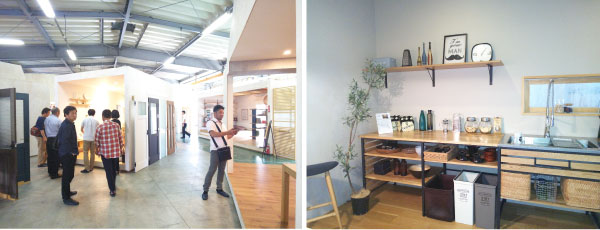 次にパンフレットに掲載されている『様々な暮らしのシーン』のショールームを見学しました。以前より随分各ブースも新しいコンセプトでコーディネイトされていました。
