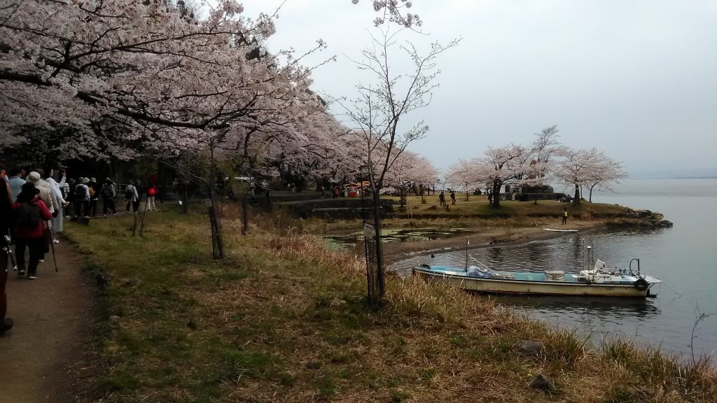 2019年4月14日(日)に地元のイベントで「歩こう会」に参加することが出来て海津大崎の桜並木を見学してきました。 大学の頃バイクでツーリングをしたとき以来で40年ぶりの見学でした。 到着時点から雨でゆっくりできませんでしたが桜に囲まれ感動出来ました 海津大崎に隣接した場所に一本の大きな桜の木がありそれがいままでに 名前は聞いたことがあるのですが【清水(しゅうーず)の桜】でお墓の横で寂しく 一本の大木が咲きほころんでいました。