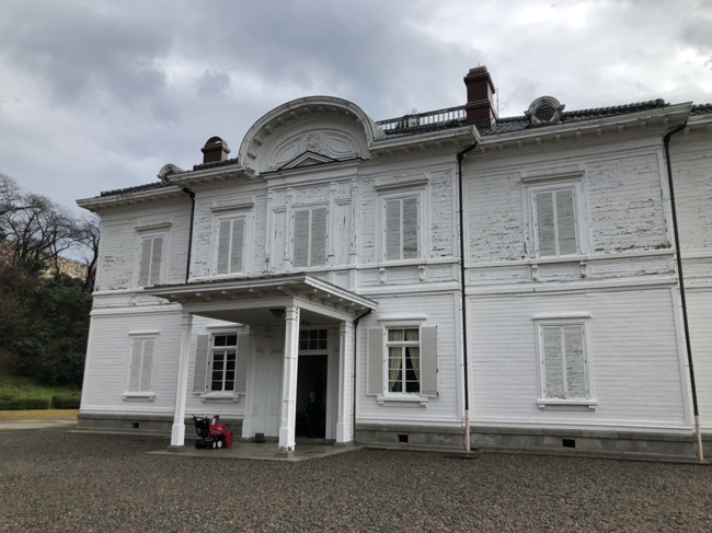 こちらは重要文化財でもある仁風閣です。1907年、当時の皇太子嘉仁親王の山陰行啓時の宿泊施設として鳥取城跡の扇御殿跡に建てられたものです。 中でも特徴的なのが支柱のないらせん階段で、現在は上り下りが安全上出来なくなっておりますが、ここまでの曲線美を可能とする当時の職人の技術の高さに感動しました。 高い技術が使われているものや、歴史のある建築物に触れることができ、とてもいい刺激になりました。これからもこのような機会があれば大切にしていきたいと思います。