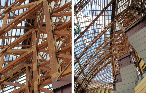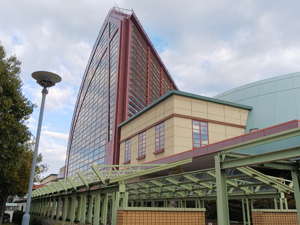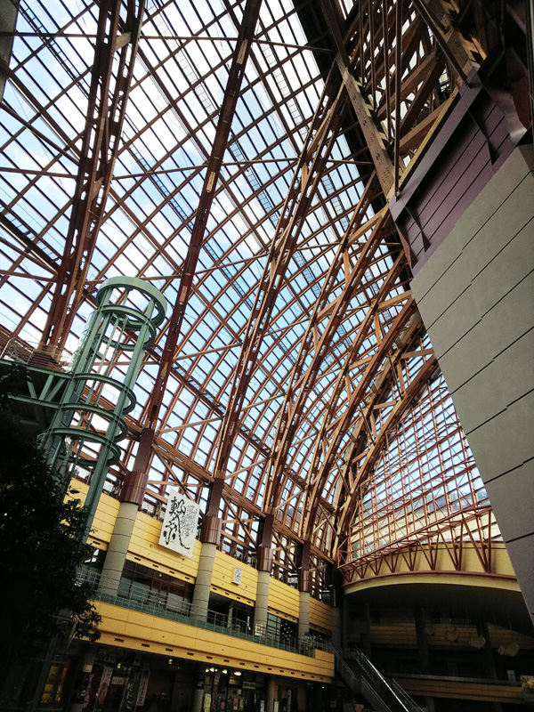 気になっていたのは、記念館の建物でした。大断面木造工法で、ガラスと曲線に作られた集成材の木材で構成されていました。すごくきれいでしばし天井を見上げて立ち止まりました。