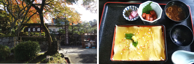 お腹もすいて来たところで、近くの「芙蓉園本館」にてお昼ご飯を頂きました。以前テレビで紹介されていたので気になって行ってみました。お目当ては「ゆば重」です。お重の中に入ったご飯にたっぷりの湯葉とあんかけが掛って、とろ~り美味です。(*^0^*)