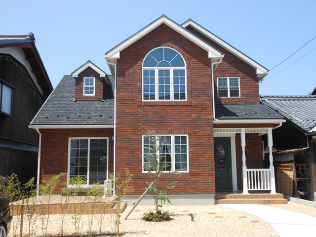 今回ご紹介させて頂く自慢のお宅は、滋賀県近江八幡市に夢のマイホームを建てられたO氏邸です。外観は、切妻屋根が印象的でシックな色合いの屋根に、圧倒的な存在感を放つ重厚感ある総レンガ張り。閑静な住宅地に一際目を引くデザインです。