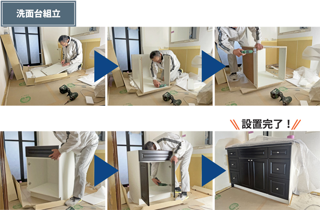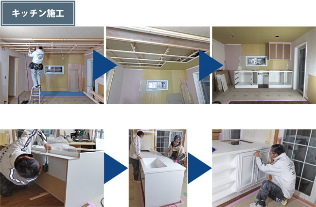 キッチンや洗面化粧台の施工、床の張り替えなど日々工事が進んでいます。