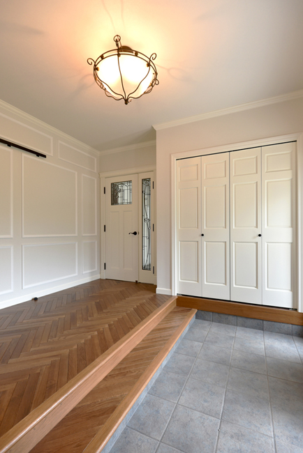 ひとたび玄関扉を開けば、輸入住宅ならではの華やかな空間が広がります。