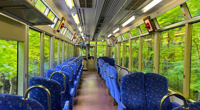 「もみじのトンネル車窓からの風景」より。叡山電鉄では「青もみじ新緑の徐行運転」を5月31日まで実施中。車窓から見る景色が目に優しく、癒されます。