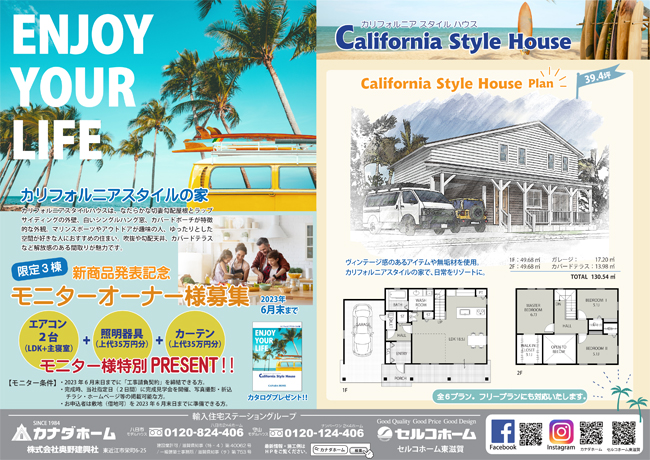 新商品発表記念「 カリフォルニアスタイルハウスの家」モニターオーナー様 募集!!