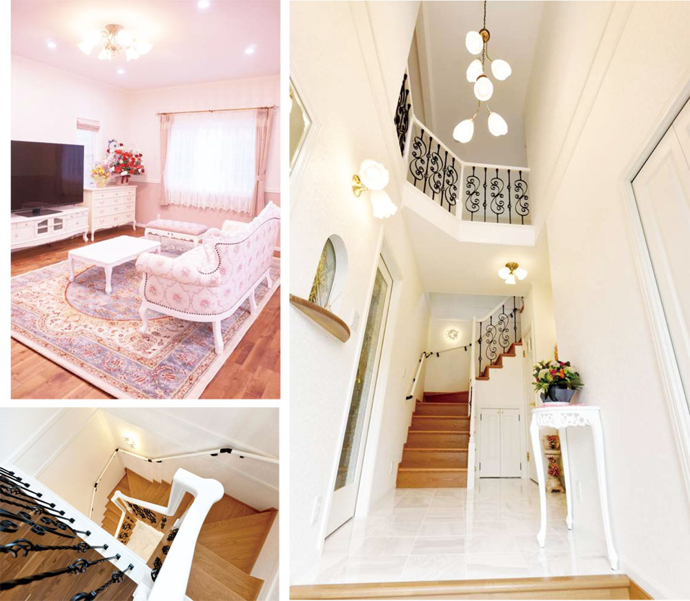 吹抜のある玄関やお部屋をワンランクアップさせてくれる、アイアン手摺を採用するなど、輸入住宅らしさ溢れる内観に仕上げられました。