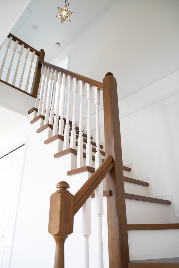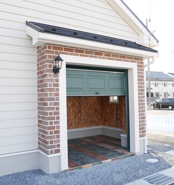 レンガとサイディングを組合せ、 ホワイトの装飾でアクセント