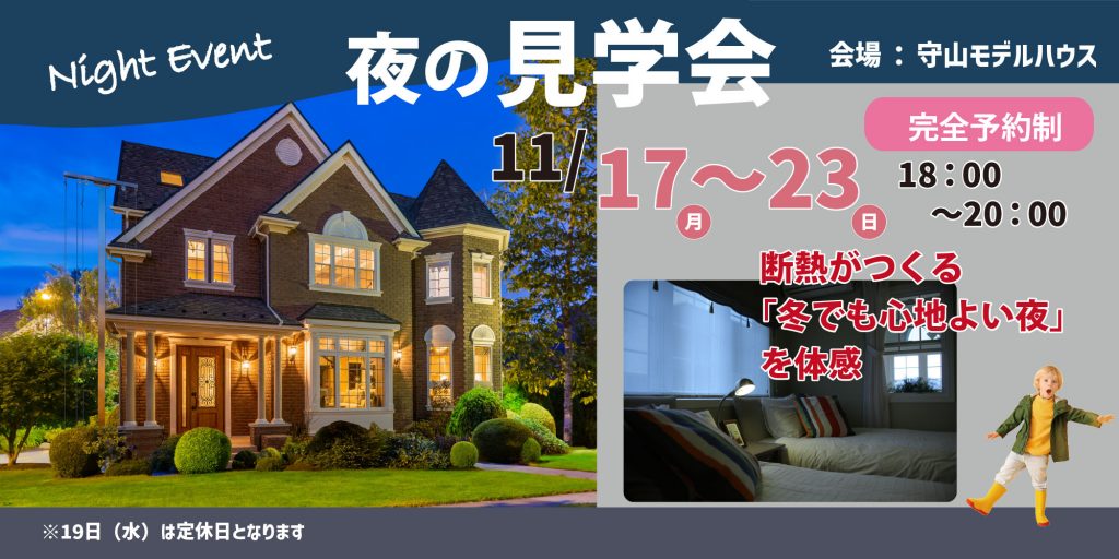 - 11/17(月)~23(日)夜の見学会(完全予約制)開催