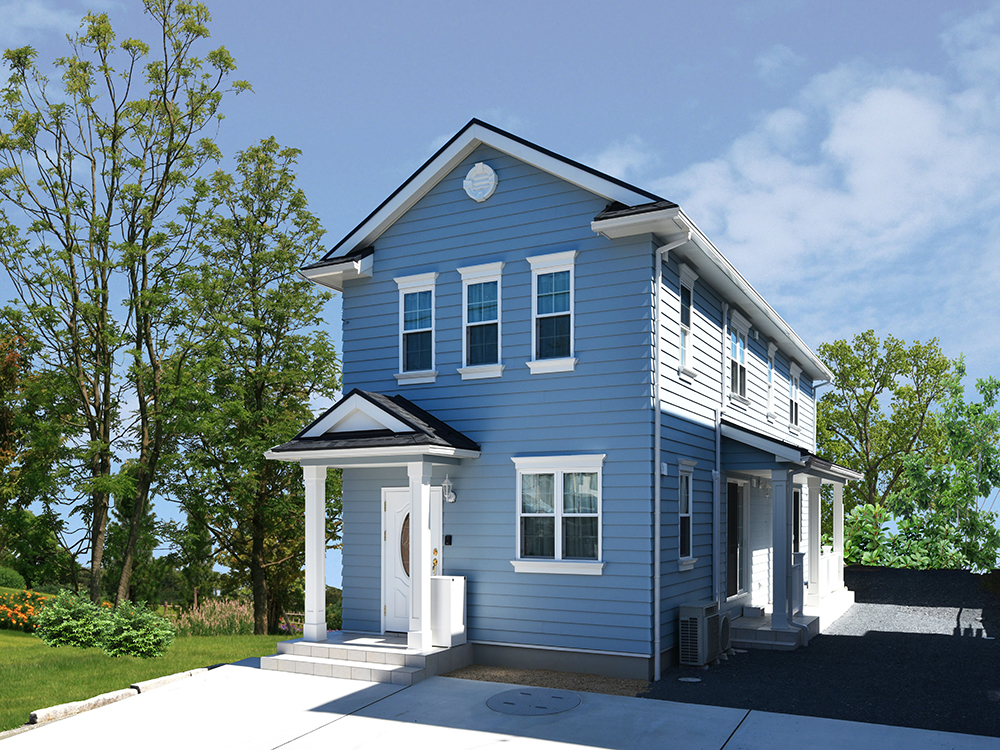 自然と調和するブルートーン毎日を楽しく過ごす、かわいい住まい